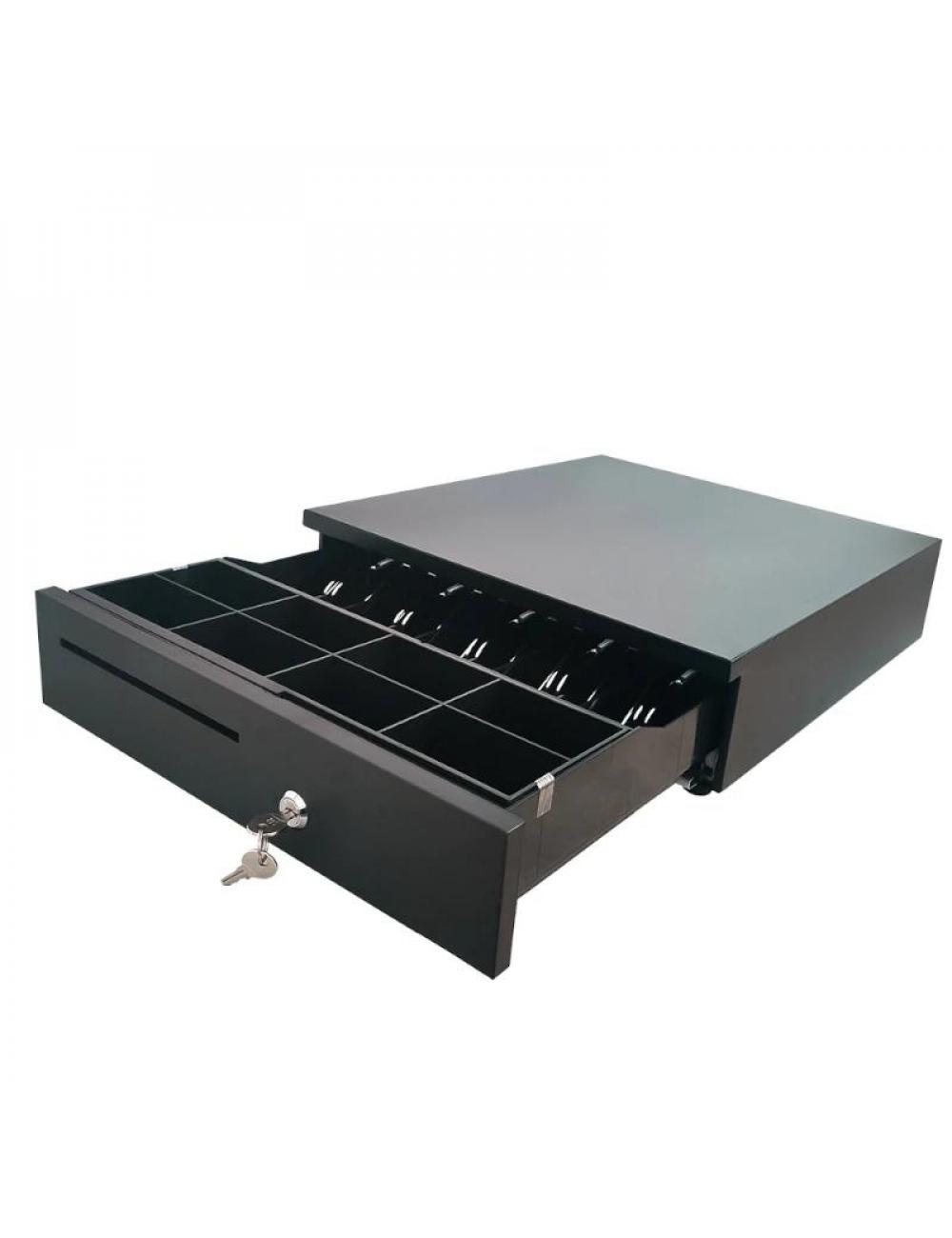 | Características | - Tipo gaveta: Fija - Comp. billetes: 5 - Comp. monedas: 5/6/8 Ajustables y extraíbles - Voltaje: 12V - Interface: RJ12 (Microswitch) - Cerradura: 3 posiciones (apertura electrónica, apertura manual y bloqueo) - Longitud cable: 1.5 m - Ranura documentos Dimensiones y peso - 405 x 420 x 100 mm - 4,35 Kg |