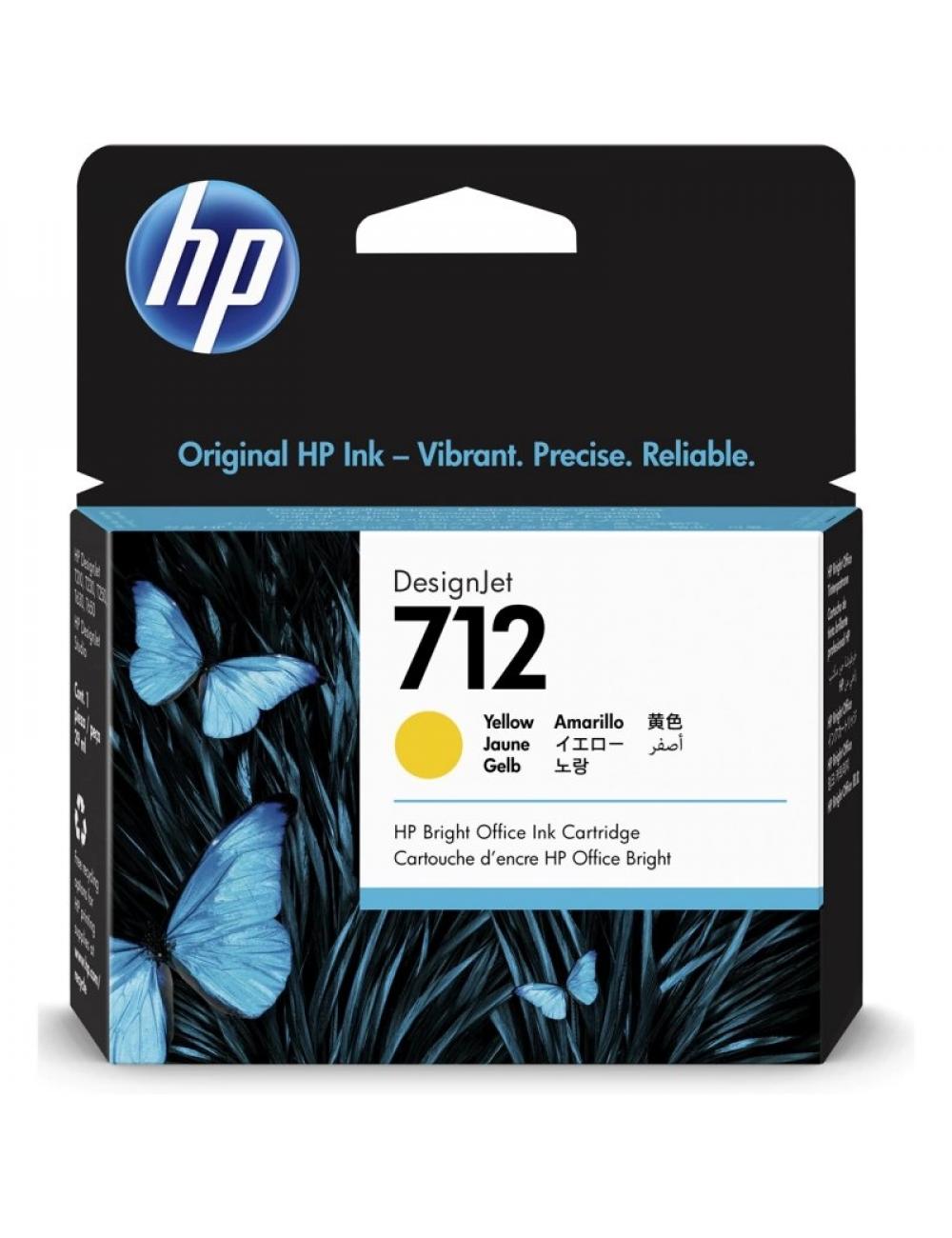 | Características | - Colores de los consumibles de impresión: Amarillo - Volumen de cartuchos de impresión entregados: 29 ml - Selectividad: 712 - Tecnologías de resolución de impresión: TIJ 4.0 - Dimensiones mínimas (ancho x fondo x alto): 114 x 25 x 126 mm - Peso: Aprox. 0,05 kg |