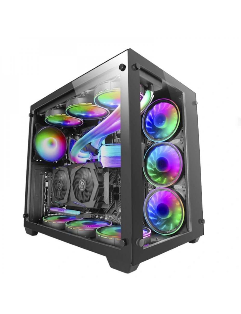 | Características | - Tamaño: Torre - Ventana lateral y frontal total de cristal templado - Iluminación RGB Croma frontal 12 modo de luz - Sistema de gestión de cableado interno - Compatibilidad con placas base: E-ATX / ATX / MicroATX / Mini-ITX - Filtros antipolvo: 1x filtro superior magnético 1x filtro inferior magnético - Sistema de gestión de cableado interno - Ventilador dedicado para CPU - Diseño de doble cámara - Puertos: 1 x USB 3.0 2 x USB 2.0 HD Audio + Mic - Tipo de fuente: ATX - Bahías internas: 2 x 3.5" HDD / 3 x 2.5" SSD - Longitud VGA máx.: 418 mm - Anchura VGA máx.: 157 mm - Altura disipador máx.: 162 mm - Slots de expansión: 7 - Refrigeración líquida: Superior: 360, 280, 240, 140, 120mm Interior: 280, 240, 140, 120mm Inferior: 360, 240, 120mm - Capacidad de ventiladores: Hasta 10 x 120 mm o 4 x 140 mm - Ventiladores: Superior: 3 x 120mm o 2 x 140mm Interior: 3 x 120mm o 2 x 140mm Inferior: 3 x 120mm Trasero: 1 x 120mm - Medidas internas: Ancho-27 Alto-37.5 (suelo a techo) Largo 42 cm - Dimensiones: 400 x 289 x 440 mm - Peso: 6.5 kg |